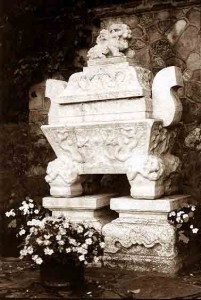 During the dedication, a portion of Gandhi’s ashes, encased in a brass and silver coffer, was enshrined in a thousand-year-old stone sarcophagus from China. Dr. V. M. Nawle, a publisher and journalist from Poona, India, who knew of the deep bond between the two great men, sent the ashes to Yogananda. Following the dedication of the memorial, Dr. Nawle wrote: